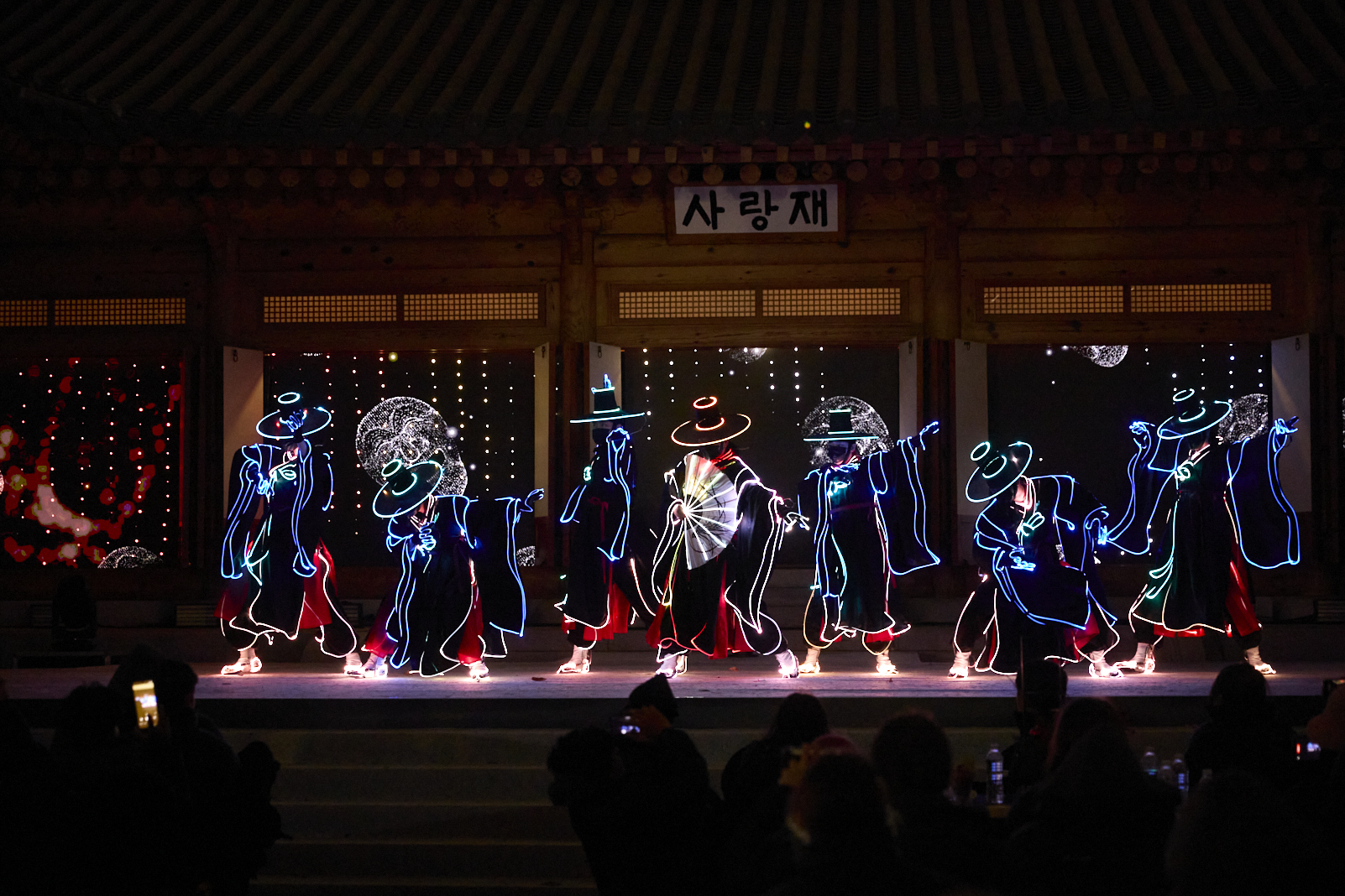 크리스앤파트너스는 사랑재의 고유한 정취를 극대화하기 위해 전통 기와의 형태를 모티프로 한 프로젝션 맵핑을 연출했으며, 이를 통해 현대적 감성이 전통 한옥에 자연스럽게 스며드는 시각적 시너지를 완성하였습니다. 더불어 공연 전 세심한 사전 리허설을 통해 현장에서 발생할 수 있는 혼선을 사전에 예방하였습니다.